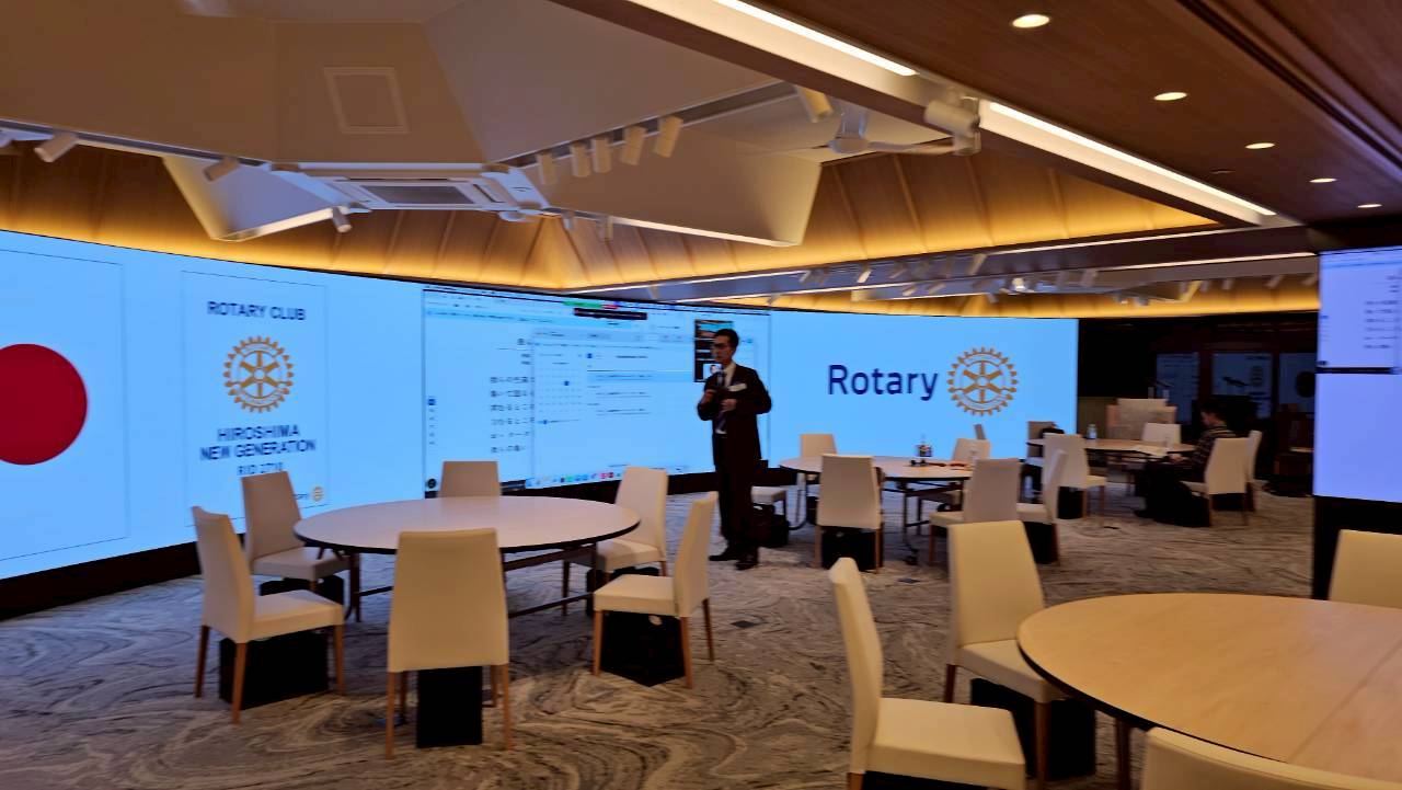 国際ロータリー第2710地区。広島新世代ロータリークラブ様に【そうだメークアップへ行こう】企画で伺ってまいりました。9月1日に発足。初代諏訪会長とご縁がありまして、11月第一例会通算3回目の例会に参加させて頂き、来客・バナー交換もさせて頂き。私達が初めてだそうです。とても記念になりました。11月21日に伝達式だそうです。スポンサークラブを持たない新しいロータリークラブ。第一、第三隔週の木曜日広島オリヅルタワーで開催されております。食事なし(素晴らしい)、ニコニコ等はキャッシュレスオンラインメークアップ及び参加。大画面で国旗、ロータリー旗とすべてが斬新感動しました。いろんな意見があると思いますが新しいロータリークラブの形、門戸が開かれていくと思います。今回お世話になりました。諏訪会長はじめ広島新世代ロータリークラブの皆様ありがとうございました\(^^)/