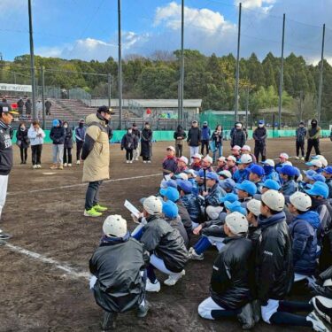 京都洛東ロータリークラブ青少年奉仕事業【元プロ野球選手に学ぶ少年野球教室】がアイアイ伏見桃山スタジアムにおいて開催されました。今年度の講師は、SoftBankホークスにおいて2年連続リーグ優勝そして昨年度は日本一に打撃コーチとしてささえられました【村上隆行氏】とオリックスバファローズ一筋に活躍されホームラン王等複数のタイトルを獲得され活躍されました。【T岡田氏】をお迎えして、京都市内の少年野球チーム5チーム100名の選手を招きご指導頂きました。準備運動、キャッチボールから始まり野球の基本から応用までをしっかり教えて頂きました。時折小雪舞う寒い中の開催でしたが子ども達の真面目に聞く姿や熱い眼差しで会場は盛り上がりました。ご参加頂いたチームの生徒さんはじめ関係者の皆様ありがとうございました。そして熱心に指導を頂きました。村上隆行様、T岡田様ありがとうございました。